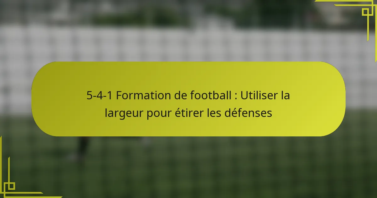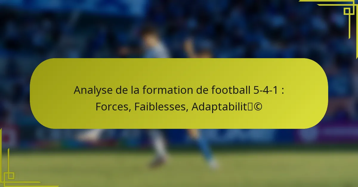 La formation 5-4-1 au football est une approche stratégique qui privilégie la stabilité défensive tout en permettant des contre-attaques rapides. Avec cinq défenseurs, quatre milieux de terrain et un attaquant isolé, cette configuration est idéale pour les équipes cherchant à résister à la pression et à capitaliser sur des transitions rapides. Cependant, elle peut également présenter des défis, tels que la vulnérabilité face au pressing haut et des options d’attaque limitées.